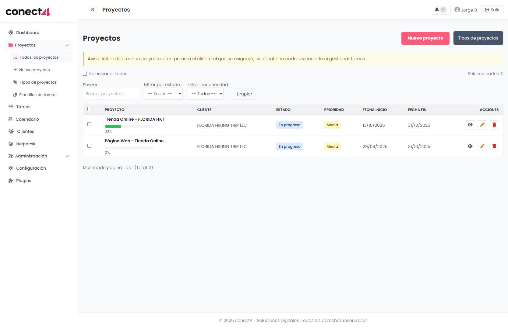 Conect4 - Gestor de proyectos para profesionales y agencias