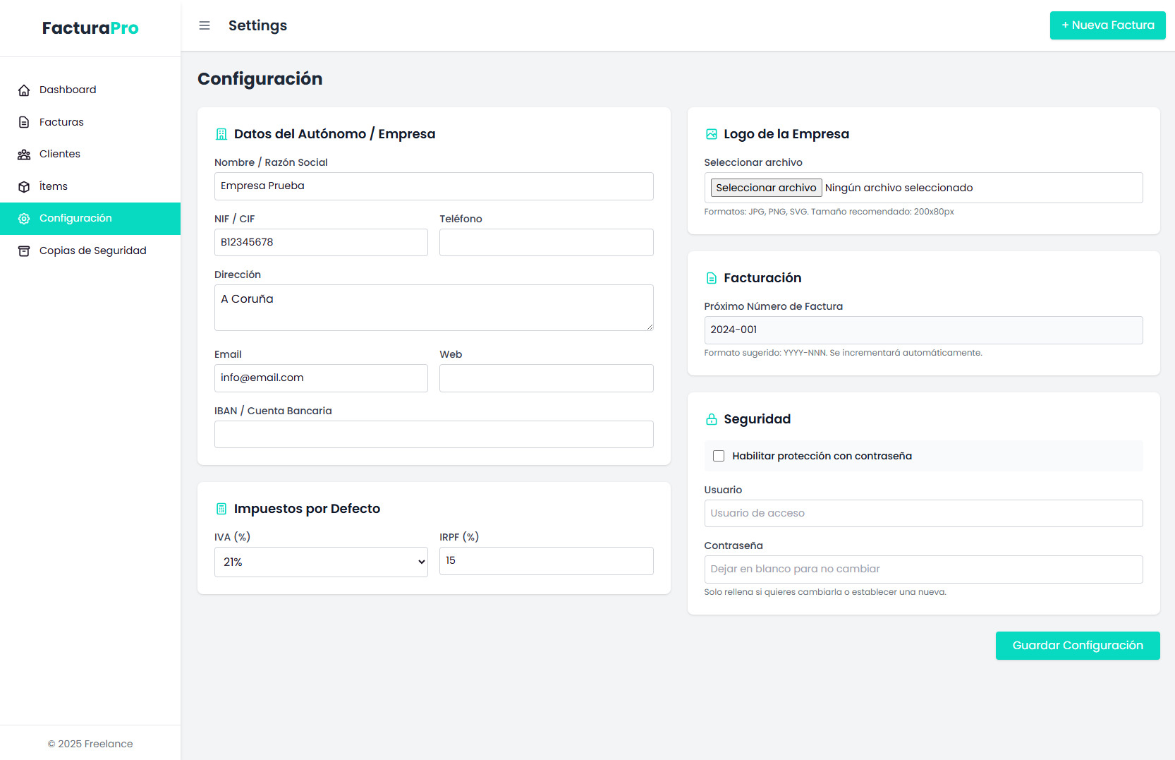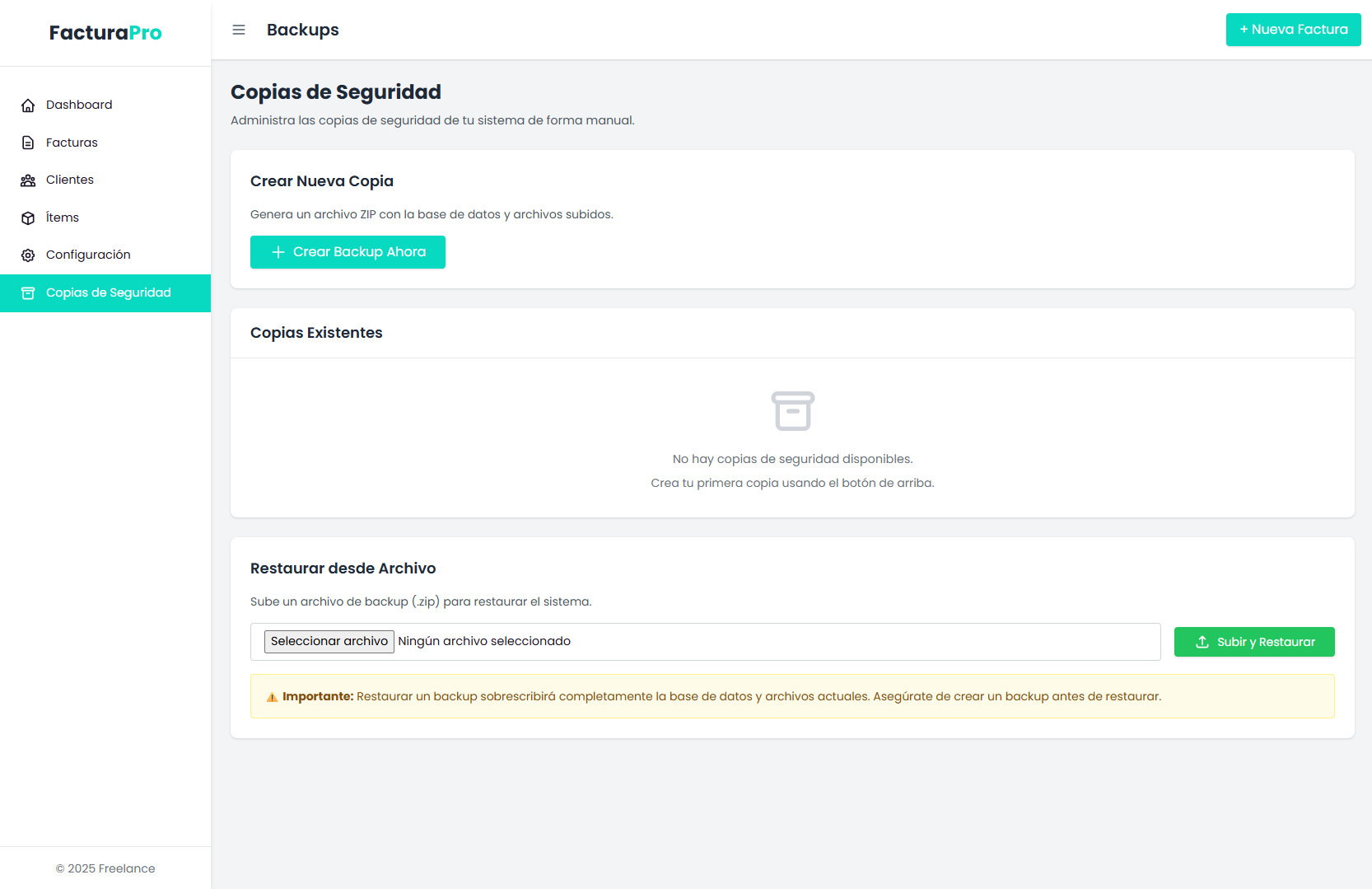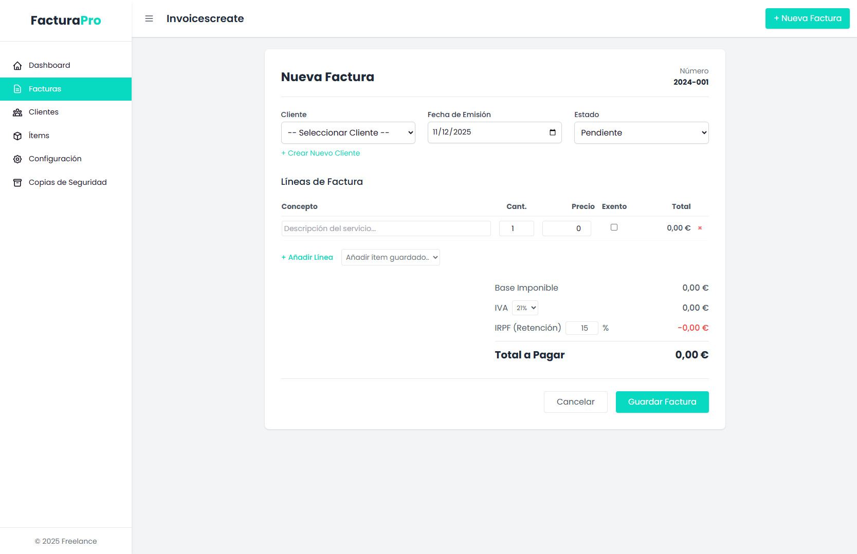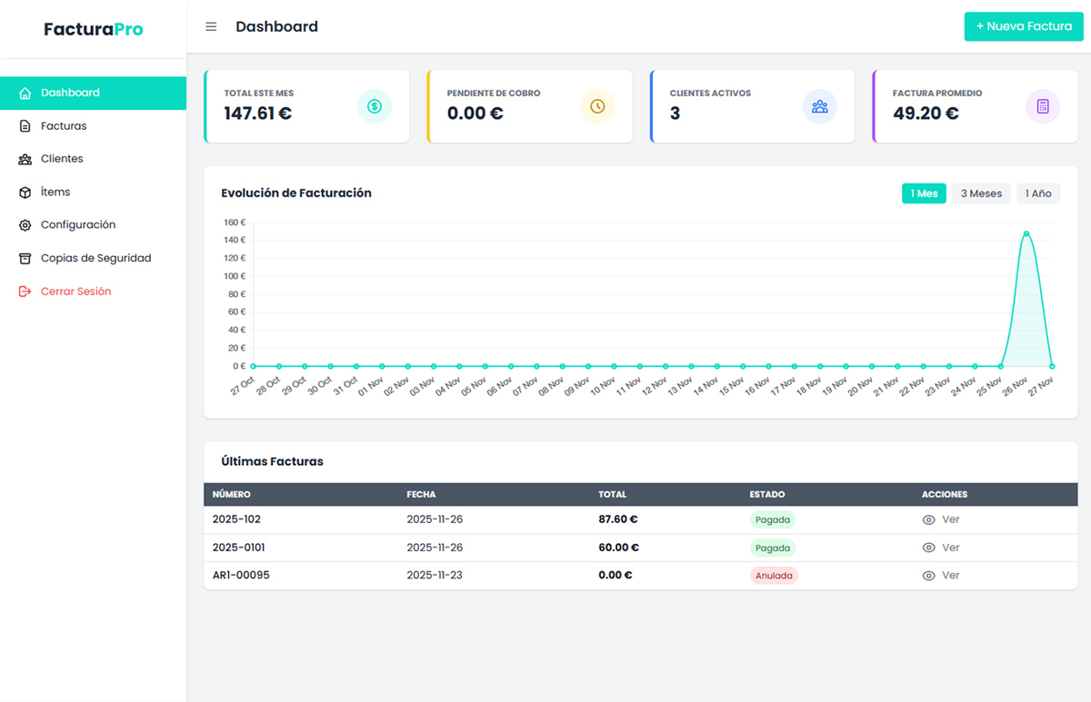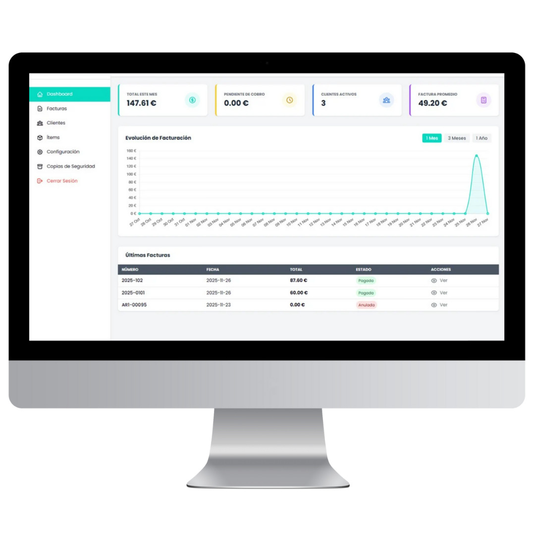 Facturación ágil para profesionales desarrollada en PHP y Alpine, automatizando cobros y simplificando la gestión fiscal.